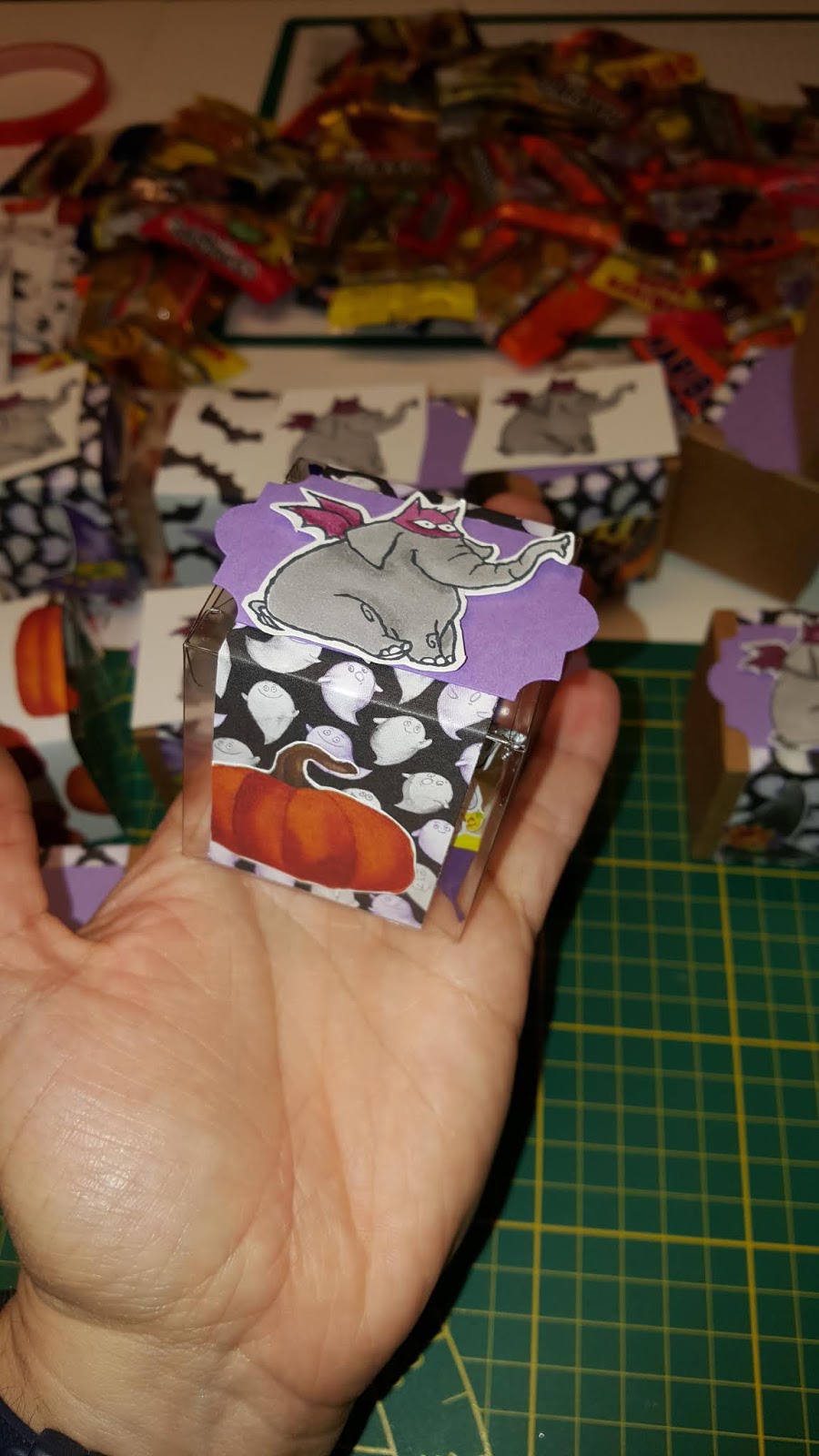 Ik ben begonnen met olifantjes. Deze stempel komt uit de stempelset Trick or tweet.